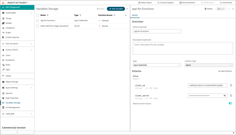 - Expand the Space Settings section in the menu and click on Variable Storage.