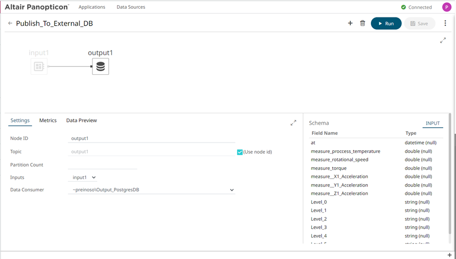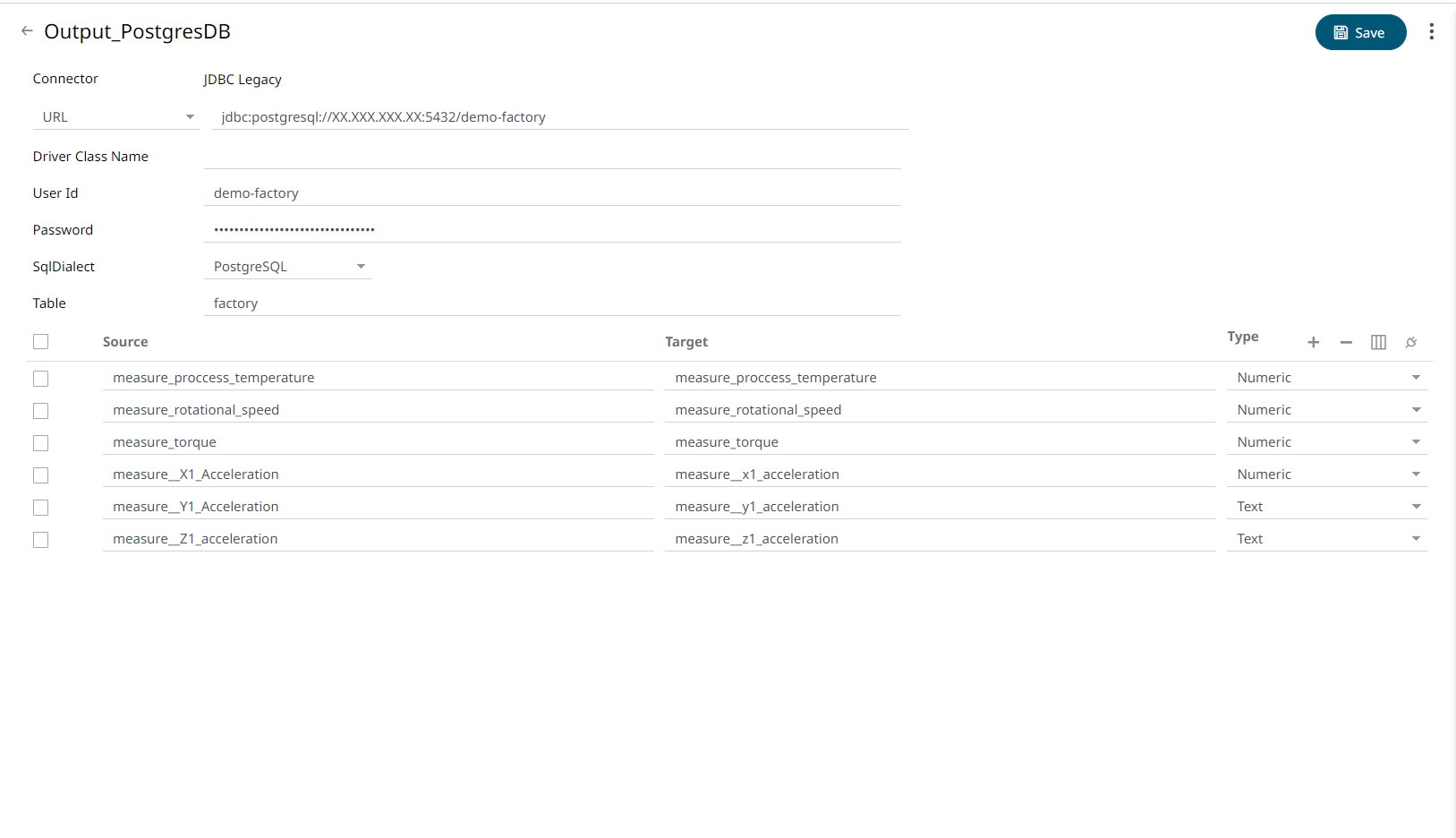 - Repeat the same process to add an output operator and an input operator, and choose from the data source drop-down from the JDBC output created earlier.